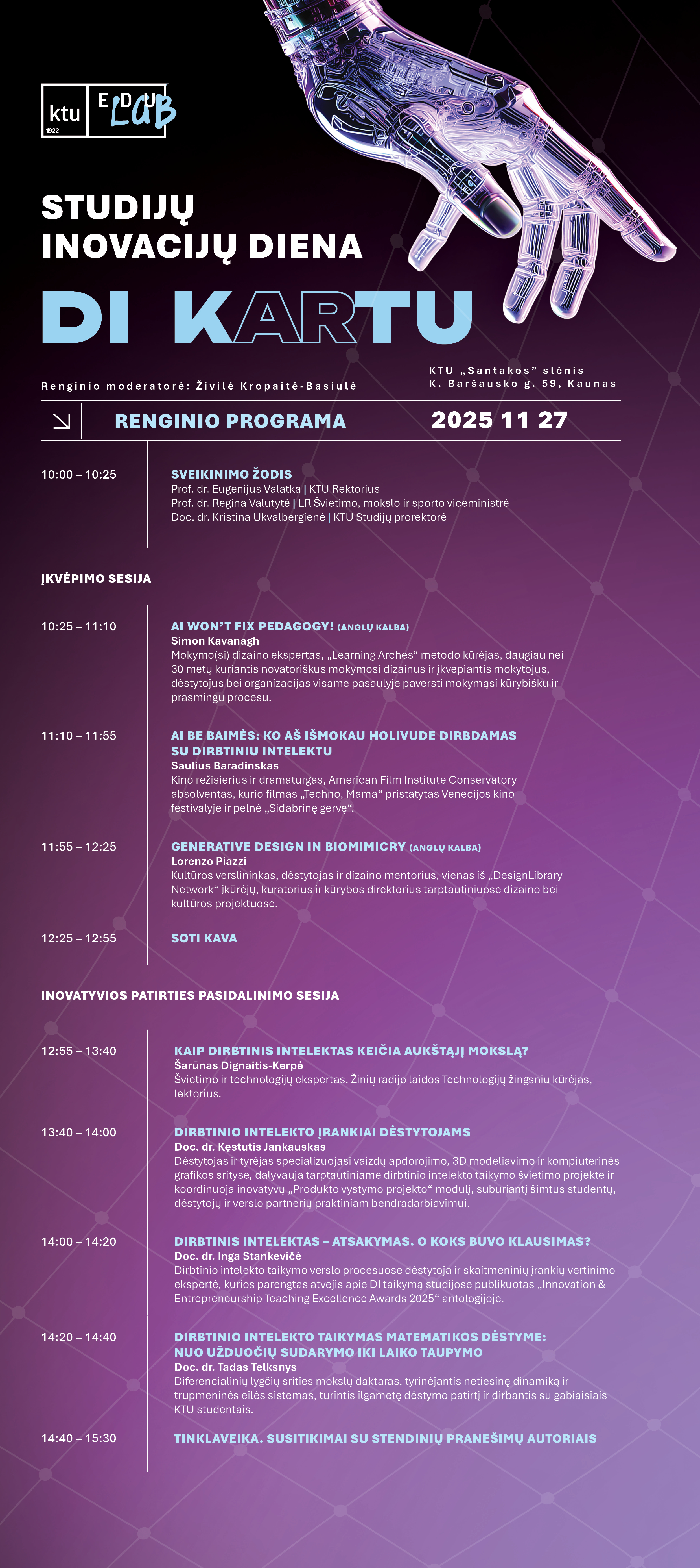 KTU.EDU svetainėje naudojami slapukai. Būtinųjų slapukų naudojimas yra privalomas. Informacija apie svetainėje naudojamus slapukus pateikiama čia.